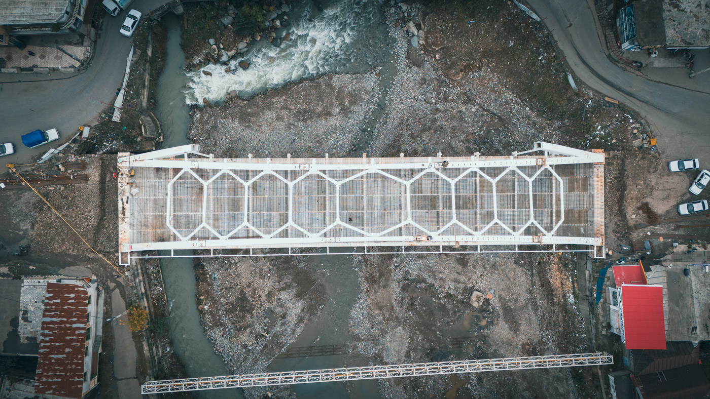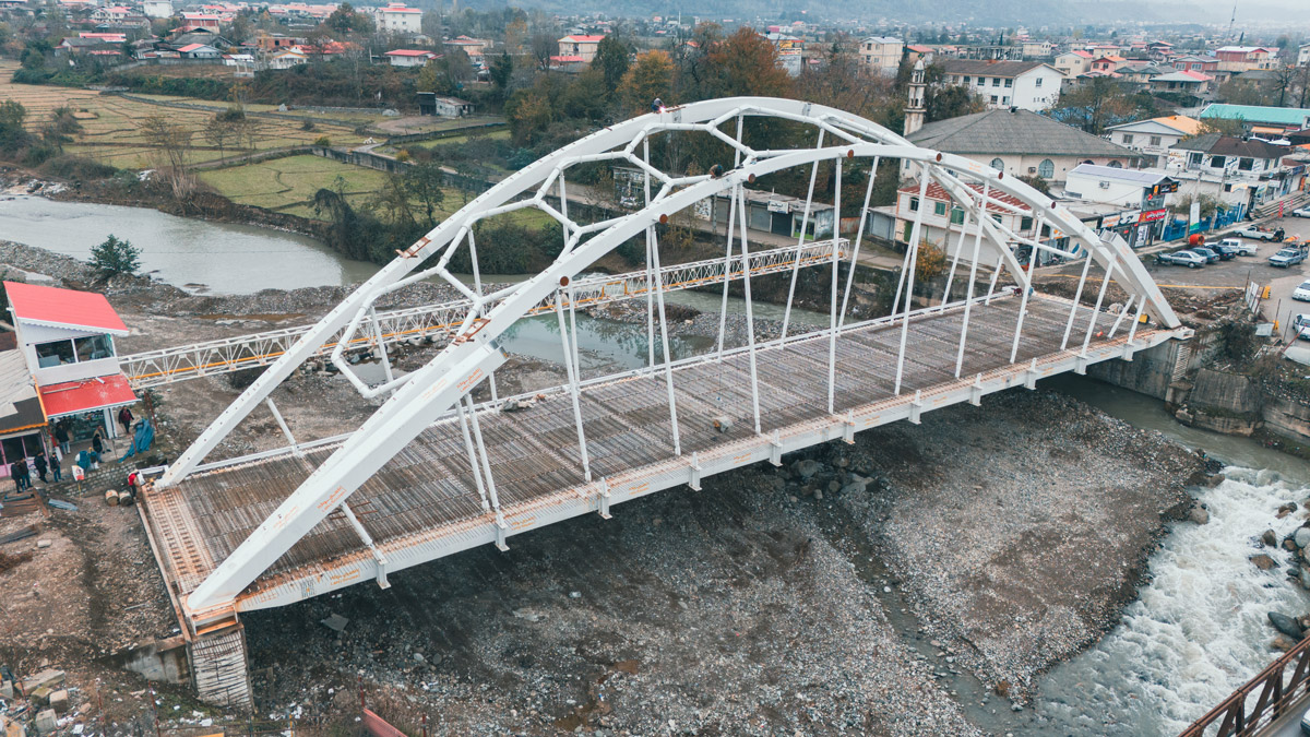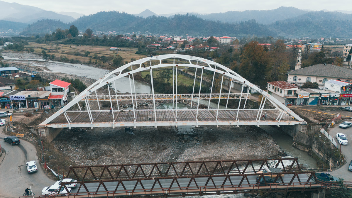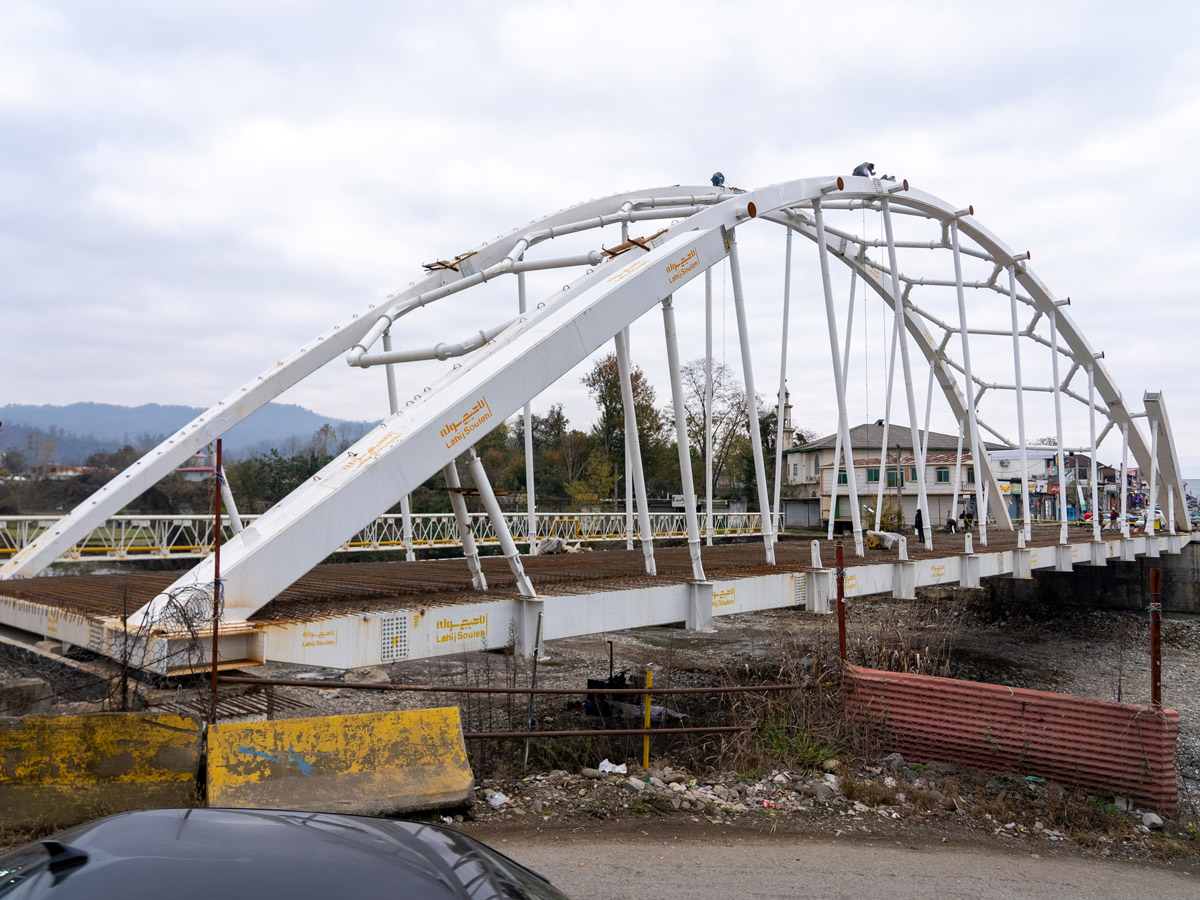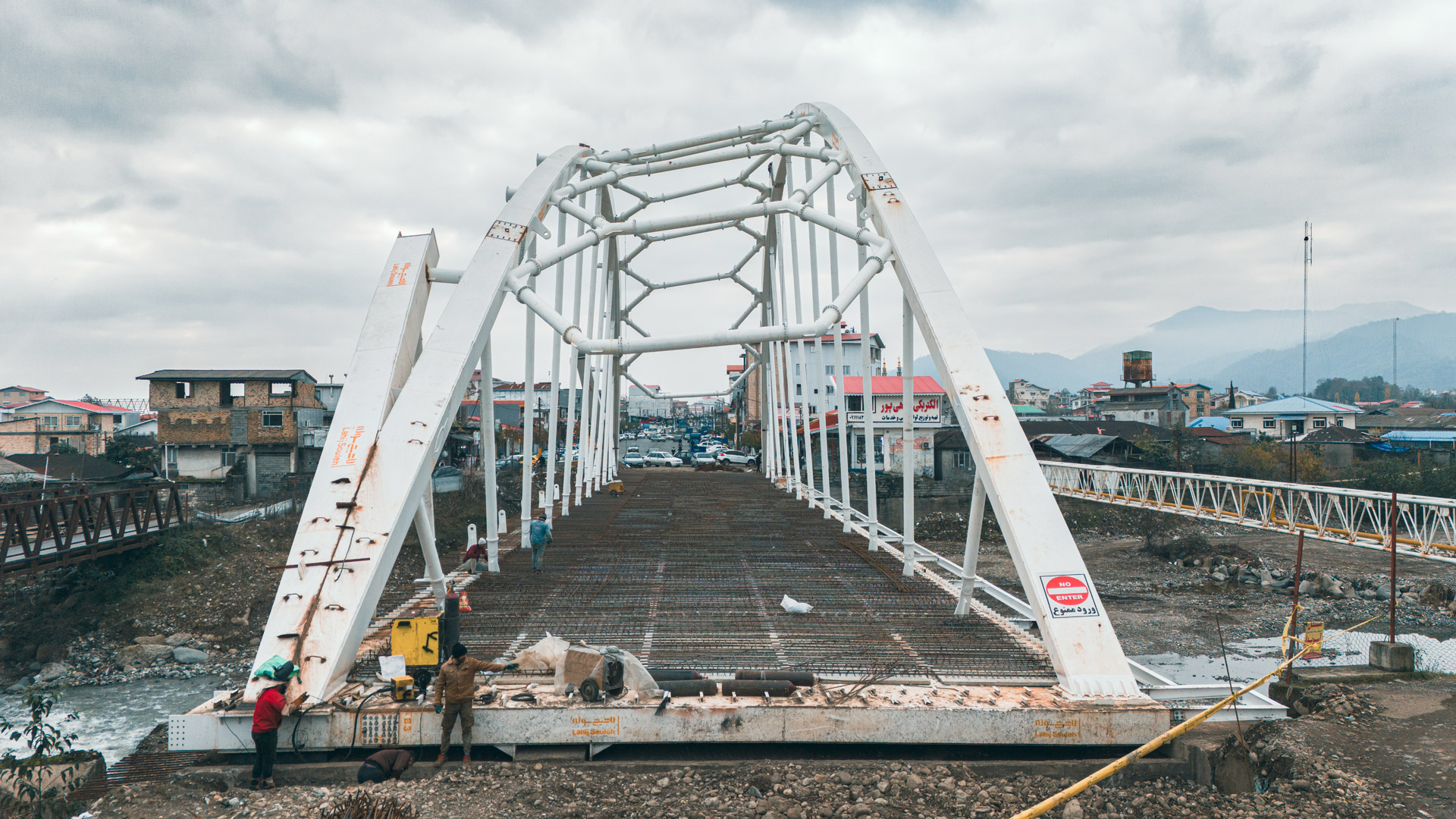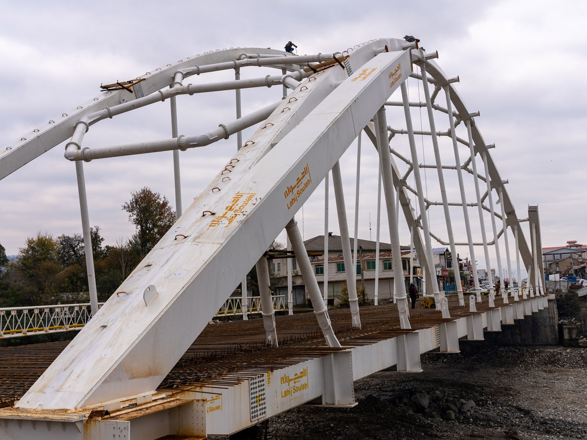 The Asalem Bridge is a steel arch bridge with a main span of 70 meters, width of 28 meters, and a total structural weight of 1,000 tons. It was awarded to Lahij Souleh by the Ministry of Roads & Urban Development in 2020 (1399).