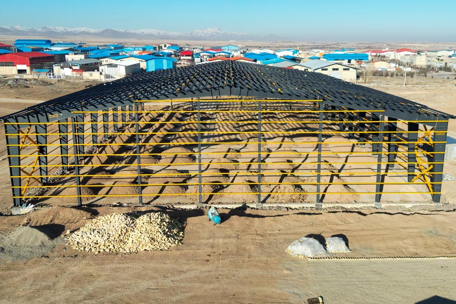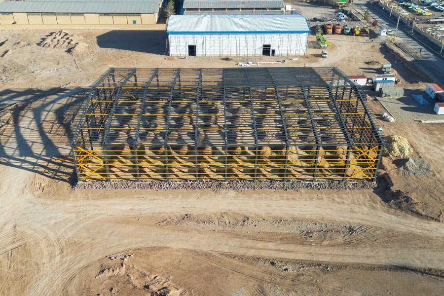 This structure was designed and executed as a steel warehouse with notable technical specifications, including a length of 60 meters and a span of 42 meters. All stages of fabrication and installation of this project were carried out by Lahij Souleh, relying on technical expertise, execution precision, and extensive experience.