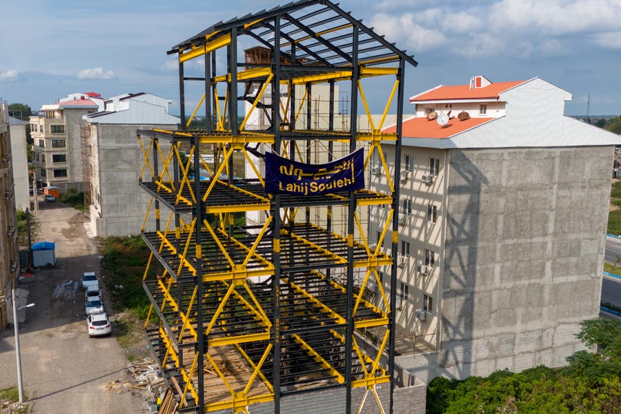 The Mr. Pournasir Project, executed in Rasht, Guilan Province, involved the design, transport, and installation of a steel structure weighing 80 tons. All phases were completed by Lahij Souleh’s professional team within an accelerated 40‑day timeline.
